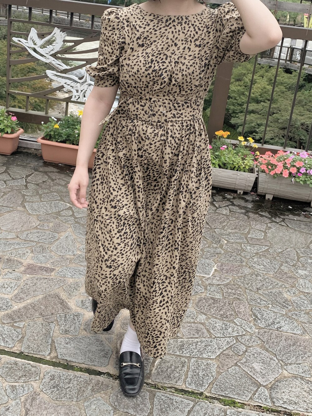 ベージュ系のワンピース、ブラック系のシューズを着用したレディースの夏コーディネートの1枚目の写真