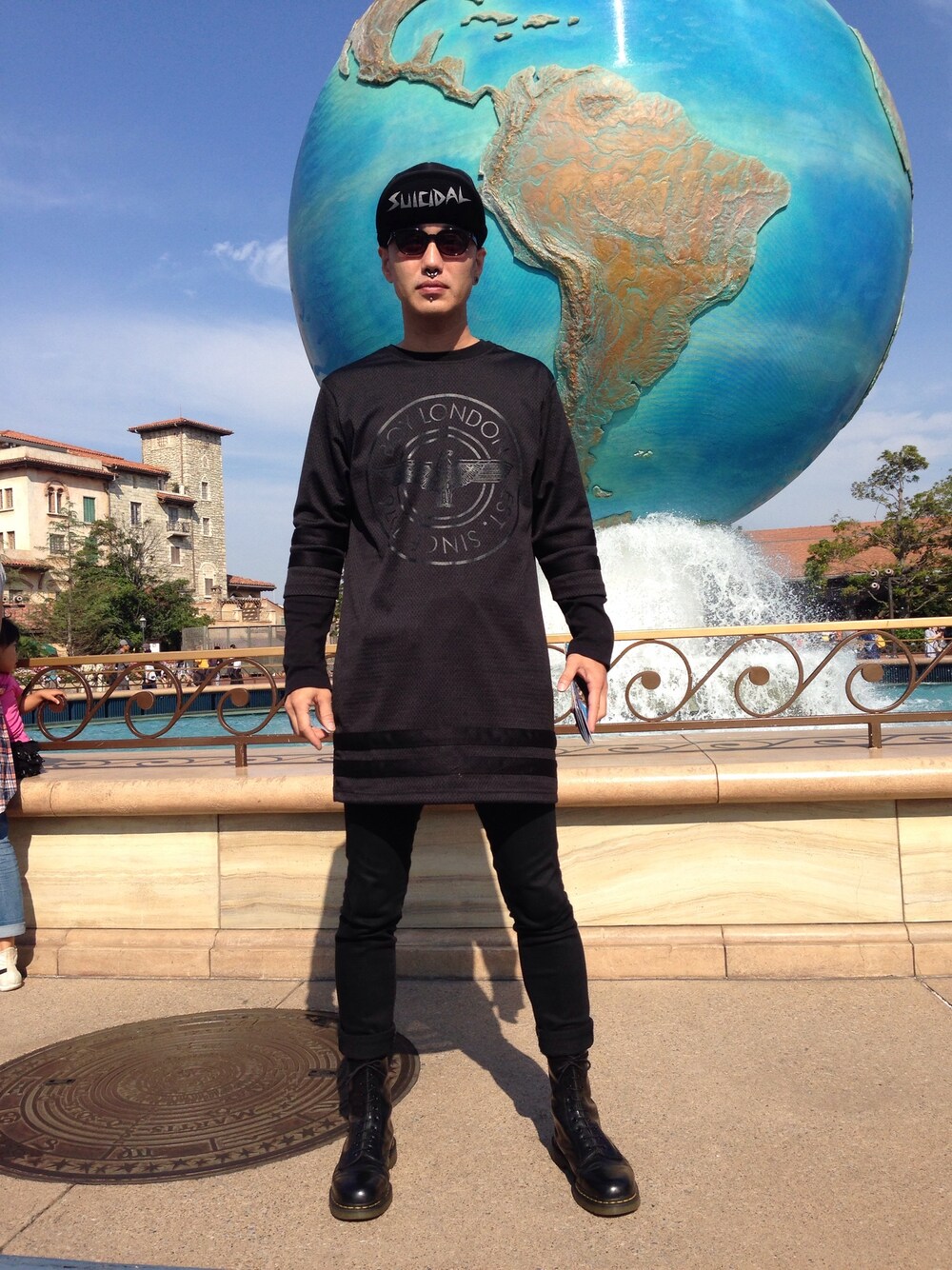 メッシュキャップ:某アパレル ストール:UNIQLO ロングTシャツ:UNIQLO メッシュロングTシャツ:BOY LONDON パンツ:UNIQLO 10ホールブーツ:Dr.Martin