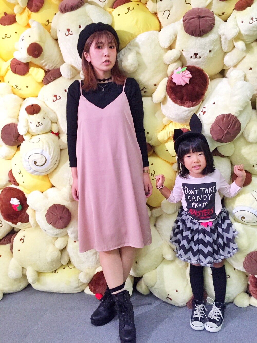 ピンク系のワンピースを着用したレディースの秋コーディネートの1枚目の写真
