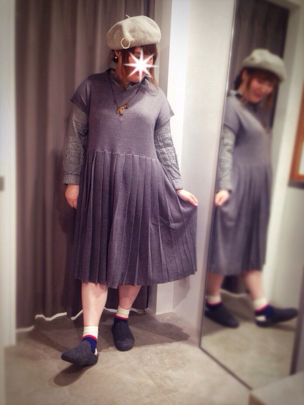 こんばんは🌙✨ 見て下さってありがとうございます(>_<)✨ 前回のコーデにもイイネ、SAVE、そしてフォローまでありがとうございます♡ 新作コーデです(*^^*) 待ちに待ったプリーツのニットワンピ👗 長めの丈なので、無謀にも生足で(笑😊) 暑がりなので、ニットは着るが生足で暫くは過ごすと思います(^ω^) ギンガムのシャツと合わせてみました👍✨ もうワンパターン、考えてるので後日アップさせて頂きます😍 昨日で同い年の先輩が退職されました… とっても寂しい…😔💦 ぽっかり心に穴が開いちゃいました…