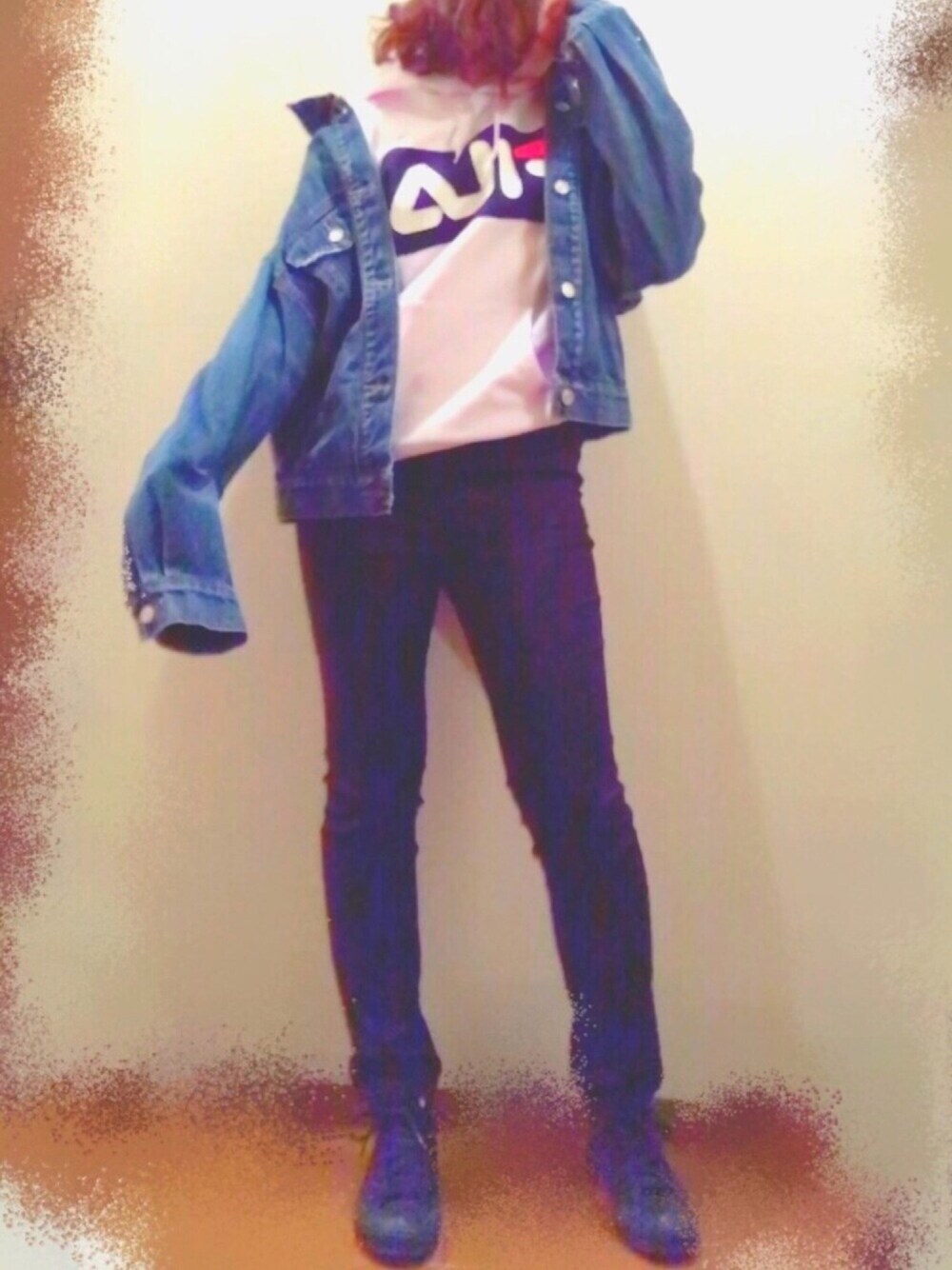 服は買ってすぐに着るタイプです。こんにちは。 💠ビッグデニムジャケット🚩¥5,900 💠FILAスウェット🚩¥4,900 ※どちらもLサイズ着用 デニムジャケットは綿100%なので型くずれすることなくパリッと着られます。💫 スウェットはゆったり着るためにLを買いましたが、脚を長く見せるために裾をスキニーのウエストに少し入れています。👍🏻