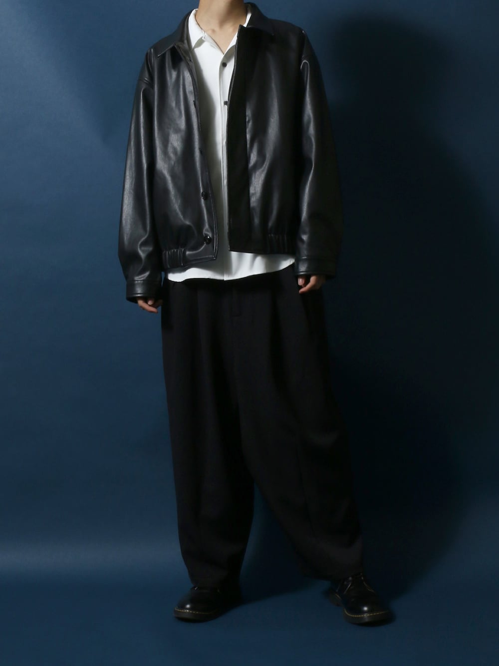 ANPAS(ANPAS)のブルゾン「Synthetic Leather Fly Front Blouson Jacket/フェイクレザー 比翼仕立て ブルゾン ジャケット」を使ったコーディネート