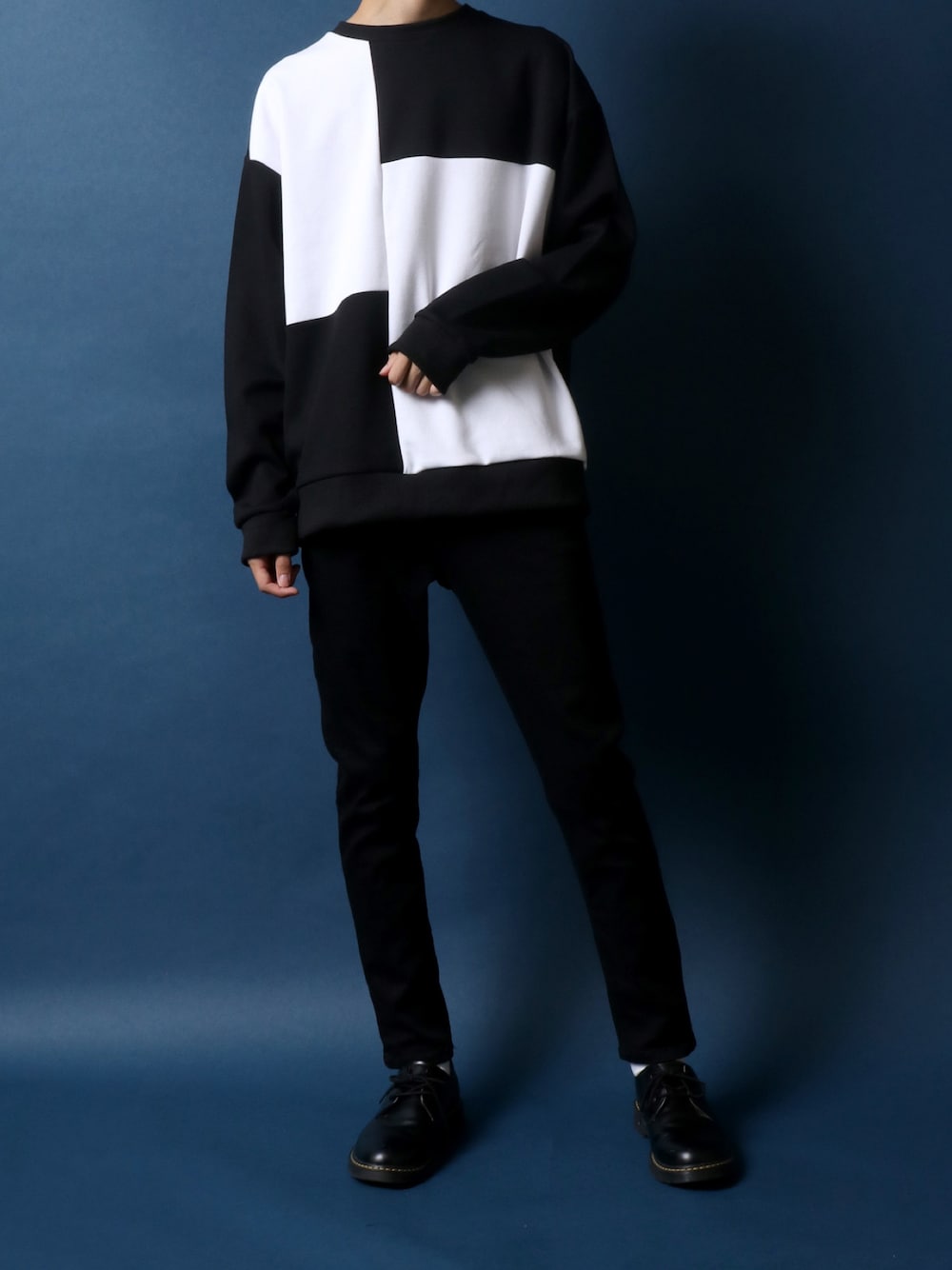 ANPAS(ANPAS)のスウェット「Monotone Color Switching Design Oversized Sweatshirt/モノトーン切り替え オーバーサイズ トレーナー スウェット」を使ったコーディネート