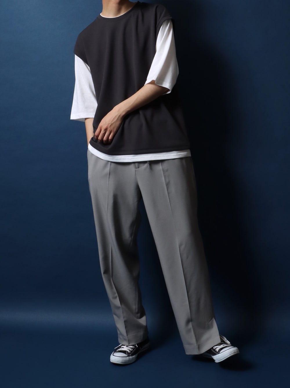 閲覧ありがとうございます!! ZOZOTOWNセレクトショップ 【ANPAS/アンパス】 モデルのRinanです。 今日は 梨地ツイルフェイクレイヤードベストTシャツ 裾スリットワイドタックパンツ サイドステッチレザーベルト 【ANPAS/アンパス】 時代の最先端を意識しながらも変わらないものを大切に。 その時々の"今"を追求し、さらにその先への新たな一歩に寄り添えるベーシックモードスタイルを提案します。