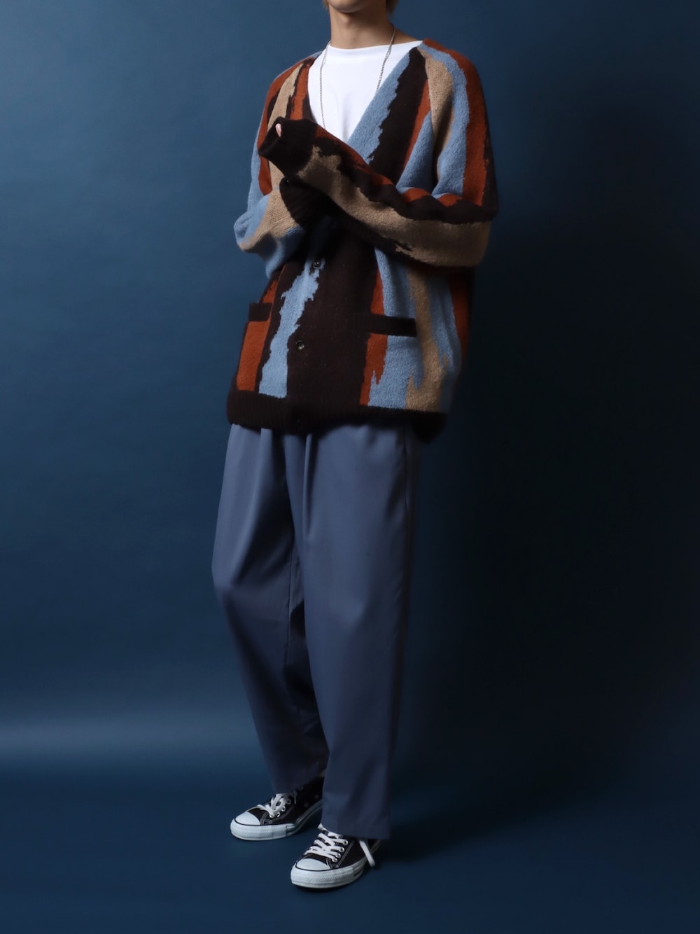 閲覧ありがとうございます!! ZOZOTOWNセレクトショップ 【ANPAS/アンパス】 モデルのRinanです。 今日は 総柄シャギージャガードニットカーディガン ANPAS高機能ヘビーウェイトビッグTシャツ ワイドタックテーパードパンツ ANPAS3点尾錠メッシュレザーベルト ANPASチェーンネックレス 【ANPAS/アンパス】 時代の最先端を意識しながらも変わらないものを大切に。 その時々の"今"を追求し、さらにその先への新たな一歩に寄り添えるベーシックモードスタイルを提案します。
