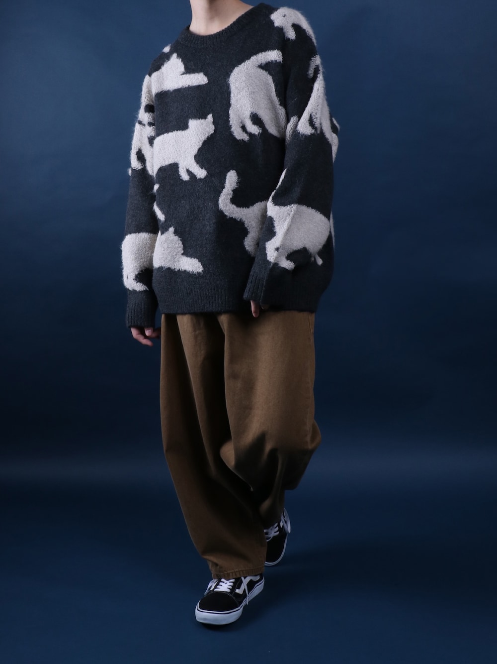 ANPAS(ANPAS)のニット/セーター「Allover Pattern Big Cat Knit/総柄 ネコ アニマル ニット オーバーサイズ」を使ったコーディネート