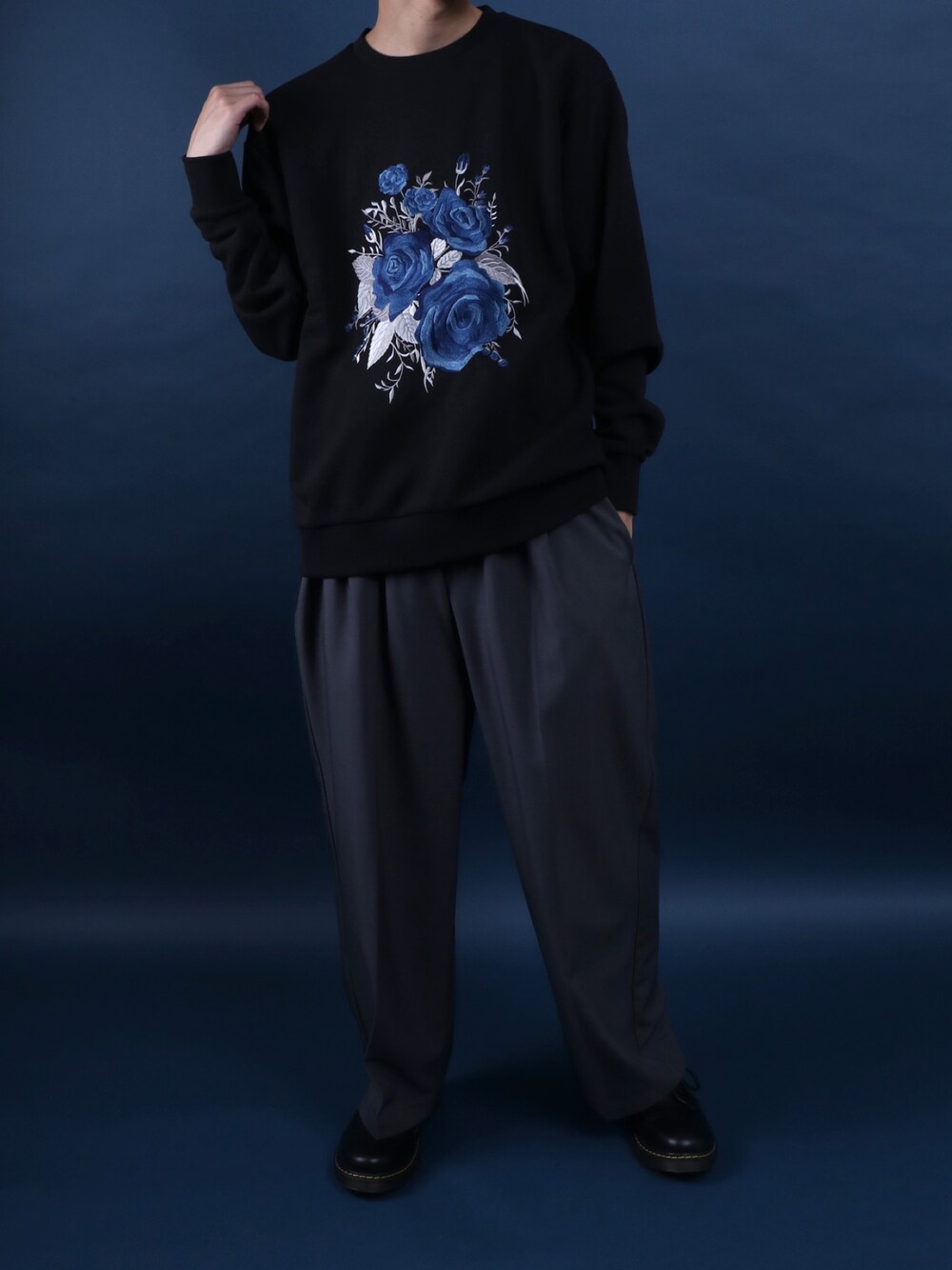 ANPAS(ANPAS)のスウェット「Fleece Lining Rose Embroidery Oversized SweatShirt/裏起毛 フラワー 刺繍 オーバーサイズ スウェット トップス トレーナー メンズ」を使ったコーディネート