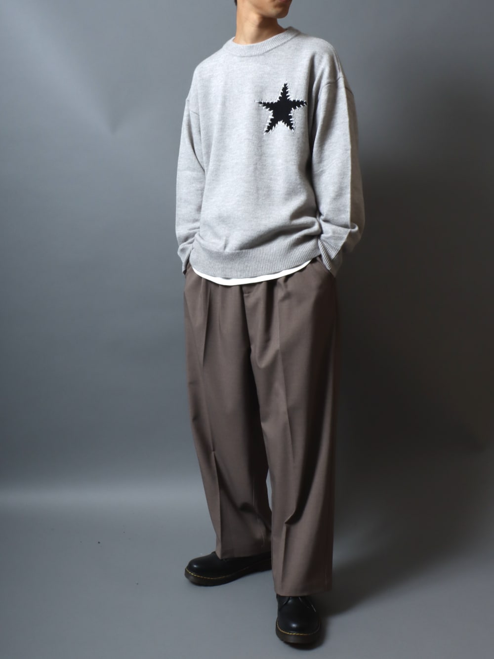 インナーチラ見せがポイント! ハート/スター モチーフハンドステッチニット クルーネックセーター メンズ レディース <Fabric> ウールに近い感触ながらチクチクせず、軽くて柔らかい、保温性の高いアクリルを使用しております。 <Design/Silhouette> 遊び心と温もりあふれるスターモチーフ/ハートモチーフを胸元にデザインしたインパクトのあるデザイン。 ややゆったりとしたオーバーサイズのシルエットが抜け感とこなれた大人の印象で スタイリングの主役にうってつけの一枚。インナー・アウター両方でお気軽にお使いいただけます。 人気のビッグシルエットスタイルでユニセックスとしてもお使いいただけます。 <Styling> ニットの下にはロンT、Tシャツ、シャツなどを合わせてチラ見せするのがおすすめ。 ダウンジャケットやミリタリージャケット、フライトジャケット、PUレザーブルゾン・MA-1・スタジャン、コートなどどんなアウターとも相性抜群です。 ワイドパンツやスラックスなどと合わせて、全体的にゆるく着こなした人気の80~90's古着スタイルがおすすめです。 カーゴパンツやジョガーパンツにスニーカーを合わせるとスポーツ、ストリートスタイルに。 トレンドのバレルレッグパンツやカーブパンツ、デニムやチノパン、ワイドパンツに合わせるとカジュアルスタイルに、さらにローファーやブーツなどの革靴を合わせると上品な大人なスタイルに。 トートバッグやバックパック、キャップやバケットハット、ニット帽、マフラー、手袋、サングラスやアクセサリーなどいろんな小物とも相性抜群です。 メンズ、レディースともに着用できるユニセックスモデルで、カップルコーデや友達同士のペアコーデにもおすすめです。