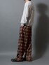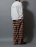 Stripe & Check Slacks / ストライプ&チェックスラックス ワイドトラウザーパンツ メンズ レディース ボトムス <Fabric> 軽くて穿き心地の良い素材を使用し、シワになりにくく日頃の取り扱いも楽です。 さらりとした生地感が快適な着心地を与えてくれます。 <Design/Silhouette> きれいめなピンストライプとカジュアルライクなチェック柄の2パターン。ワイドなシルエットがカジュアルからきれいめまで旬なスタイリングを作り出します。 <Styling> ダウンジャケットや中綿ジャケット、トラックジャケット、ミリタリージャケットにチェスターコートなどどんなアウターとも相性抜群。 カジュアルなロンTやから無地のカットソー、スウェットトレーナー、パーカー、ニットにシャツなどどんなトップスとも相性抜群です。 ビッグシルエットのトップスに合わせて、全体的にゆるく着こなす人気のゆるふわスタイルや80~90's古着スタイルがおすすめです。 スニーカーと合わせてカジュアルスタイルに、ローファーやブーツなどの革靴と合わせると上品な大人スタイルに。 トートバッグやバックパック、ショルダーバッグ、キャップやハット、サングラスやアクセサリーにウエスト周りのベルトやキーリングなどいろんな小物とも合わせやすい万能パンツ。 メンズ、レディースともに着用できるユニセックスモデルで、カップルコーデや友達同士のペアコーデにもおすすめです。