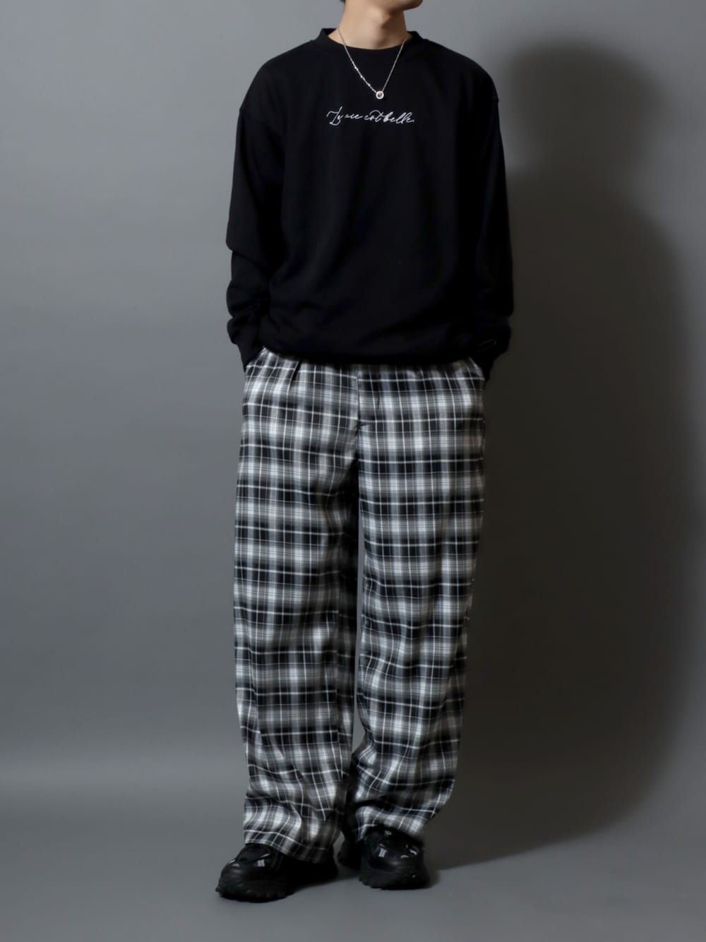 Stripe & Check Slacks / ストライプ&チェックスラックス ワイドトラウザーパンツ メンズ レディース ボトムス <Fabric> 軽くて穿き心地の良い素材を使用し、シワになりにくく日頃の取り扱いも楽です。 さらりとした生地感が快適な着心地を与えてくれます。 <Design/Silhouette> きれいめなピンストライプとカジュアルライクなチェック柄の2パターン。ワイドなシルエットがカジュアルからきれいめまで旬なスタイリングを作り出します。 <Styling> ダウンジャケットや中綿ジャケット、トラックジャケット、ミリタリージャケットにチェスターコートなどどんなアウターとも相性抜群。 カジュアルなロンTやから無地のカットソー、スウェットトレーナー、パーカー、ニットにシャツなどどんなトップスとも相性抜群です。 ビッグシルエットのトップスに合わせて、全体的にゆるく着こなす人気のゆるふわスタイルや80~90's古着スタイルがおすすめです。 スニーカーと合わせてカジュアルスタイルに、ローファーやブーツなどの革靴と合わせると上品な大人スタイルに。 トートバッグやバックパック、ショルダーバッグ、キャップやハット、サングラスやアクセサリーにウエスト周りのベルトやキーリングなどいろんな小物とも合わせやすい万能パンツ。 メンズ、レディースともに着用できるユニセックスモデルで、カップルコーデや友達同士のペアコーデにもおすすめです。