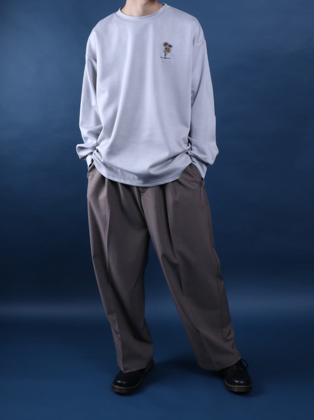 ANPAS Flower Embroidery Oversized Shirt /別注 ポンチ 花柄 ワンポイント刺繍 オーバーサイズ 長袖シャツ ロンT スウェット トップス トレーナー メンズ レディース <Fabric> とろみのある触り心地の良いポンチ生地を使用しており抜群の着心地を得られます。 肉厚で、透け感はなくインナーを選ばす気兼ねなくヘビロテコーデとして使用できます。 シワになりにくく形態安定に優れているため日頃の取り扱いがとても楽です。 <Design/Silhouette> 半袖・長袖ともに大人気の一押し商品!2026SS春も継続販売が決定! 手書き風に描かれたフラワー刺繍をワンポイントにさりげなく表現しており、高級感と見た目のインパクトを与えます。 キレイめや韓国ストリートのスタイリングに相性の良い花柄モチーフがモード感漂う個性的なデザインとなっております。 程よい生地の厚さでスウェットトレーナーとしても、インナーのロンTとしてもマルチにお使いいただけます。 洗練されたミニマルなデザインがカジュアルからキレイめまで幅広いスタイリングに対応できます。 トレンドのオーバーサイズのボックスシルエットが旬なスタイリングを作り出します。 ポンチ素材特有のハリ感と程よい光沢感が上品な印象を与えてくれます。 人気のビッグシルエットスタイルでユニセックスとしてもお使いいただけます。 <Styling> ワイドパンツやスラックスなどと合わせて、全体的にゆるく着こなす人気のゆるふわキレイめスタイルがおすすめです。 カーゴパンツやジョガーパンツにスニーカーを合わせるとスポーツ、ストリートスタイルに。 デニムやチノパン、ワイドパンツに合わせるとカジュアルスタイルに、さらにローファーやブーツなどの革靴を合わせると上品な大人なスタイルに。 トートバッグやバックパック、キャップやバケットハット、サングラスやアクセサリーなどいろんな小物とも相性抜群です。 メンズ、レディースともに着用できるユニセックスモデルで、カップルコーデや友達同士のペアコーデにもおすすめです。