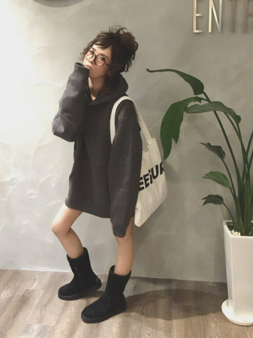 でたでた😂 肌触り大好きな裏起毛×むっくりフード♡ スーパーオーバーでビックサイズなパーカーに一目惚れ😂#名前ながめ 153㎝でSサイズ着てます🌴 今日も可愛いお客様が田川から会いに来てくださいました💓 ありがとうございますっ😂