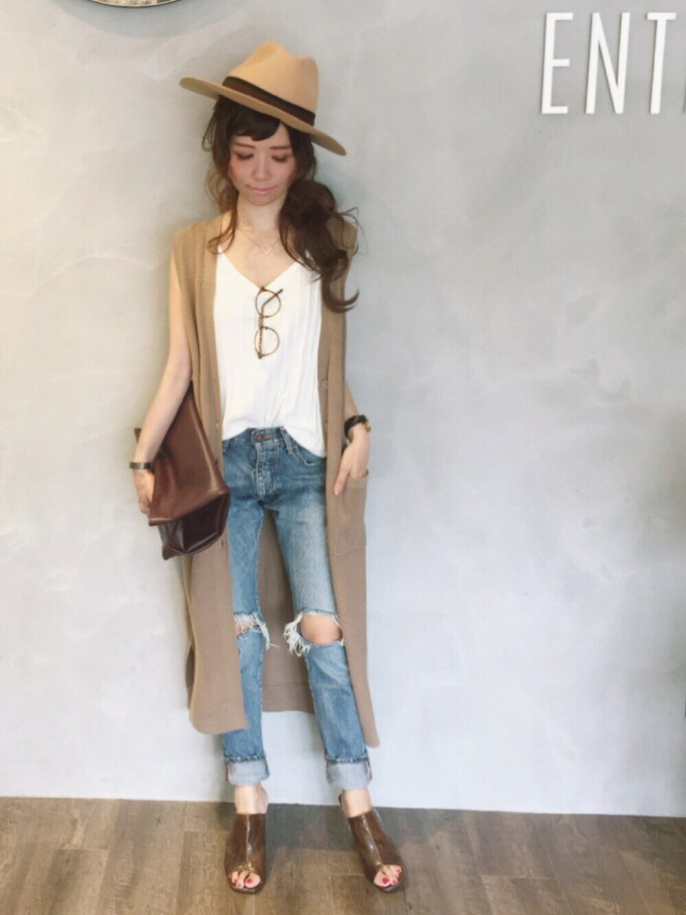 お疲れ様でっす😂 愛用中のSLYのニットロングジレ #安定のフレンチスリーブ😂💕 ポロンと着れる肌触りやし しっかりした落ち感のあるニット素材やから秋まで使えるやつ💕 SALEで2600円くらい‼️#震 お得なのでぜひ😂💕 ほんでお気に入りすぎるみーたん(@mi1213)にお譲りしてもらったデニムっっ💕 大切にします😍💕
