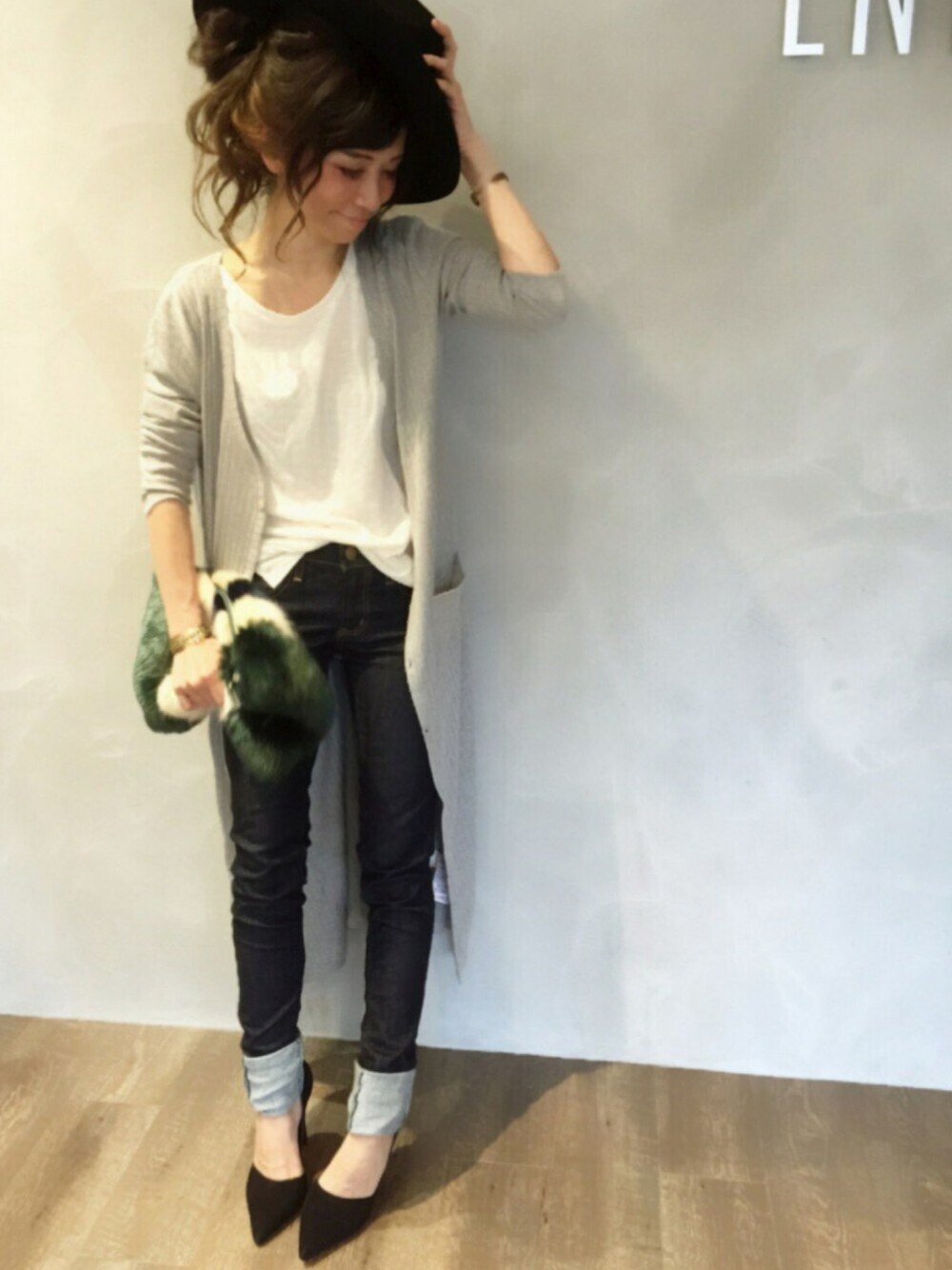 SHIORI HIRAI◡̈のハット「フェイクレザーベルトハット」を使ったコーディネート