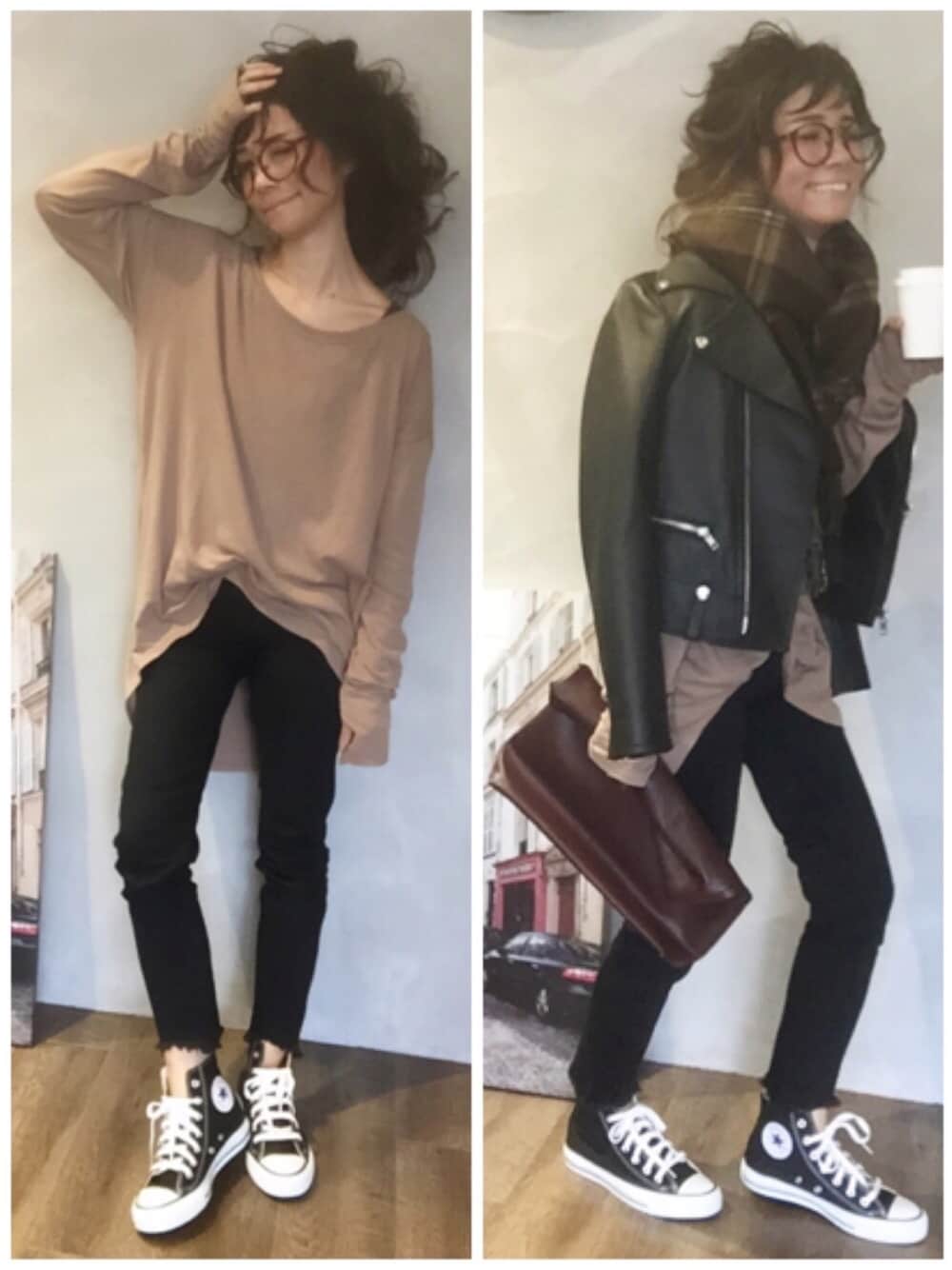 ポロンと着れるモチモチトップスに ブラックフレイドヘム×黒コン💕 袖が指を通せて可愛い😂 大切な皆様 素晴らしい週末をお過ごしください🌵 Instagram▶︎@anpy0519