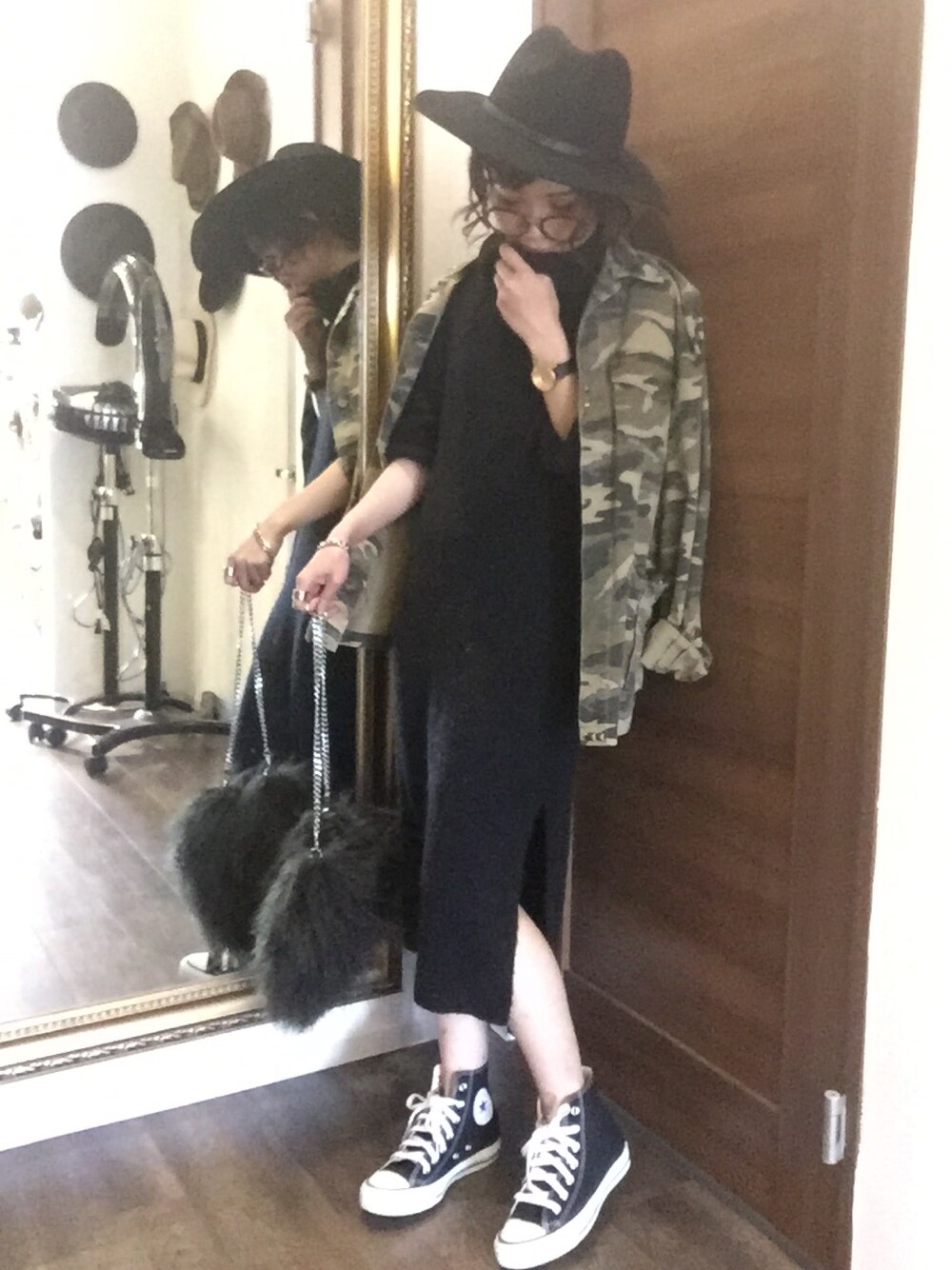 SHIORI HIRAI◡̈のハット「フェイクレザーベルトハット」を使ったコーディネート