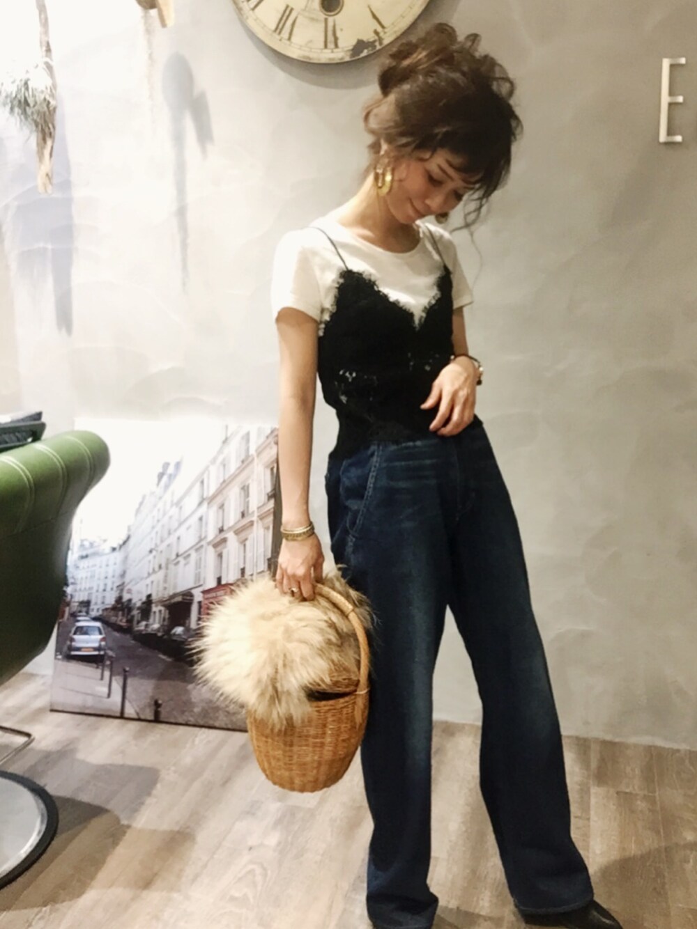 キャミ可愛い♡ ハイウエストデニムで♡ Instagram▶︎sh_0519