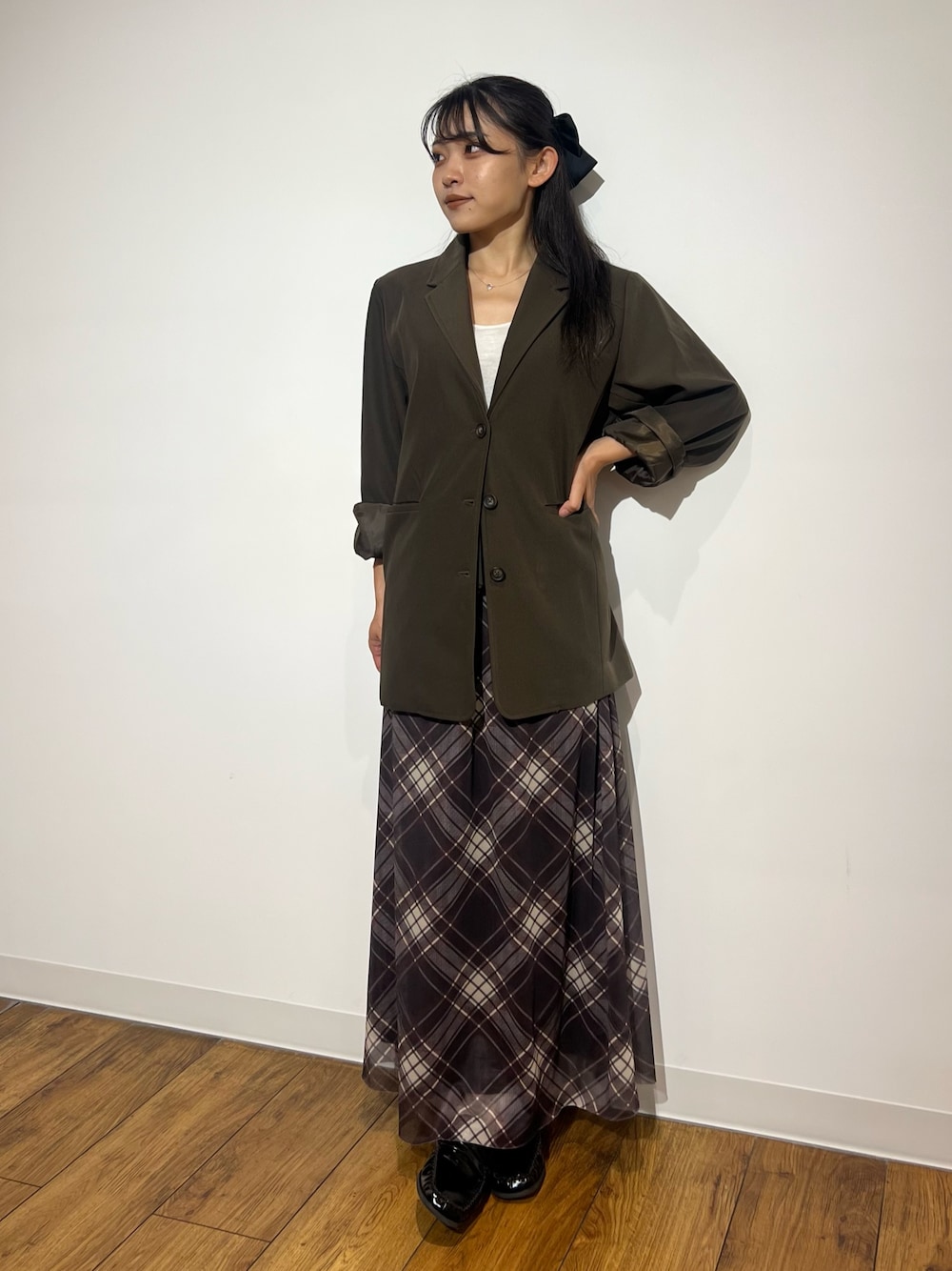 ご覧いただきありがとうございます🤍ྀི 𓏸アウター One 𓏸ボトム One 𓏸シューズ S 着用しております ୨୧ .· ジャケットは襟元が取り外し可能なのでコーデの雰囲気によって変えれる2wayとなっております🎶襟なしだとカジュアルにジャケットを着こなせるのでデニム生地と合わせやすいです🙆🏻♀️ スカートはウエストがコムなので履きやすく、シアーなので春夏はもちろん、これから秋本番でお色味が落ち着いた2色となっているのでとってもオススメです🤎