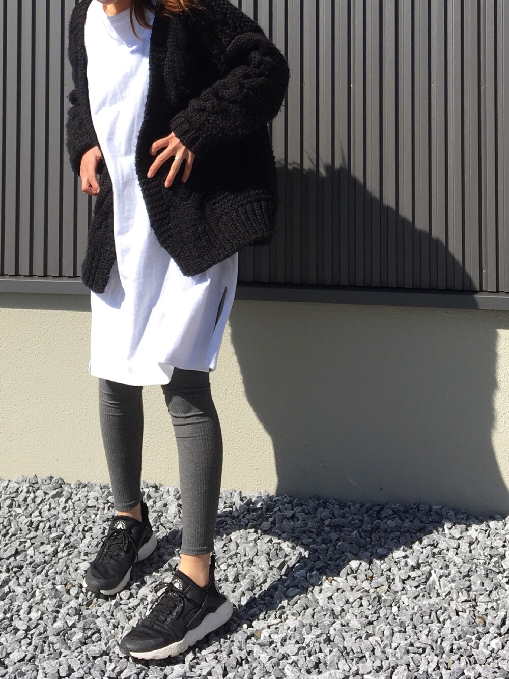 チャンリーのスニーカー「NIKE ナイキ W AIR HUARACHE RUN ULTRA ウィメンズエアハラチランウルトラ 819151 008BLACK/BLACK-BLACK-WHITE」を使ったコーディネート