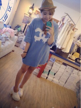 「アイテム(ワンピース、ブルー系)」を使った、涵さん(レディース)の夏コーディネート
