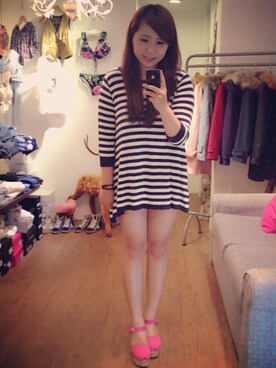「アイテム(パンプス、ピンク系)」を使った、涵さん(レディース)の夏コーディネート
