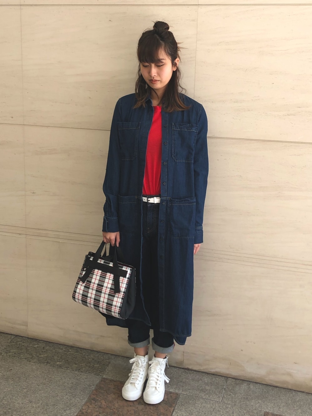 サラのワンピース「レディース ビッグポケットデニムシャツロングワンピース」を使ったコーディネート