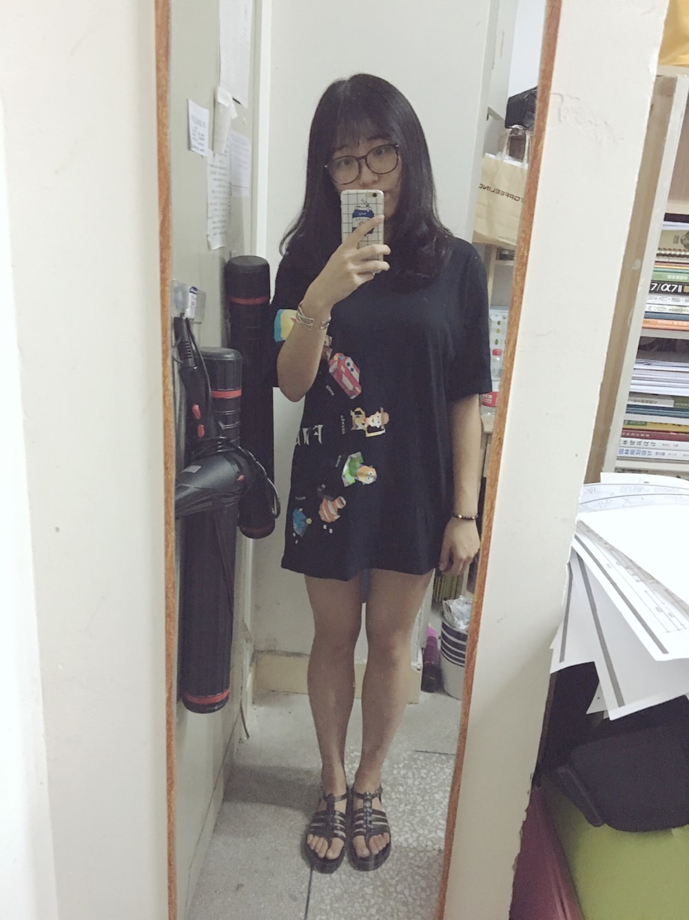 ブラック系のTシャツ/カットソーを着用したレディースの秋コーディネートの1枚目の写真