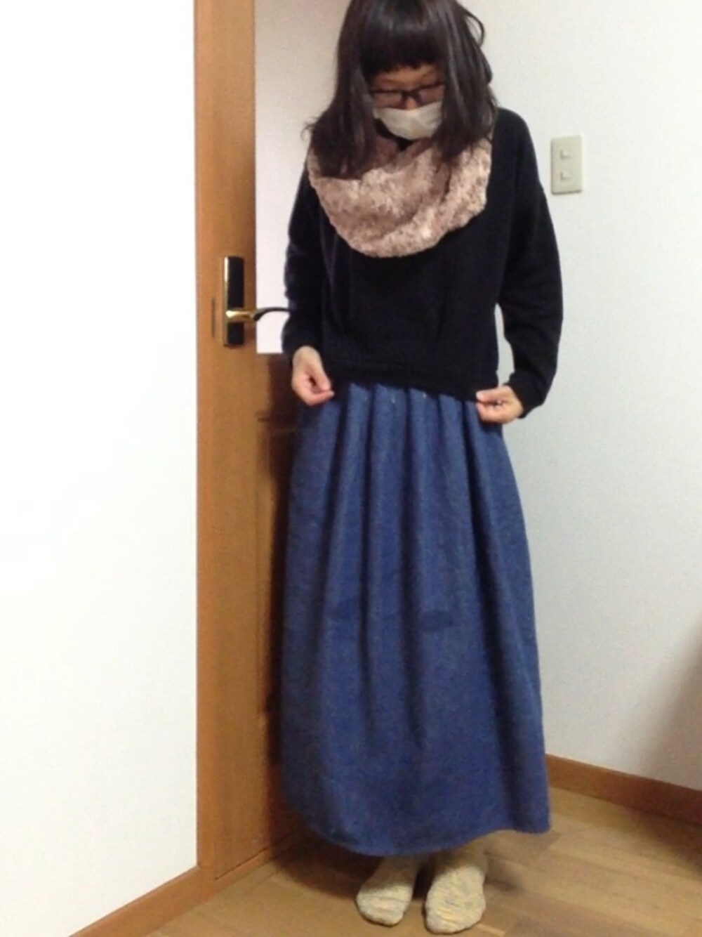 部屋着です。 あ、スヌードは外でもつける。 寒すぎて困りますね〜