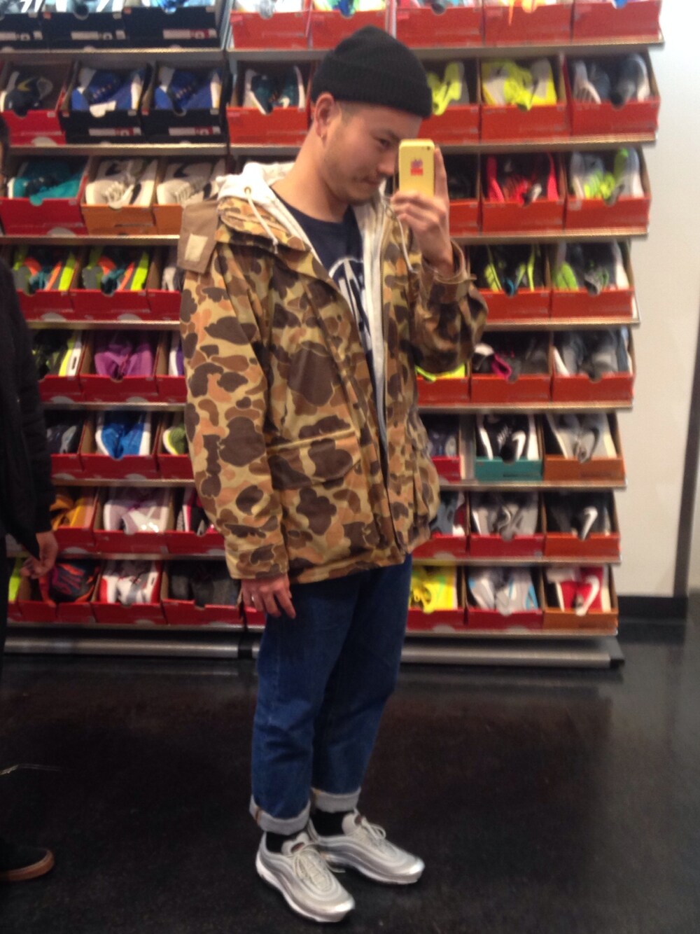 knit cap : aevil jacket : columbia used hoddie : us army used s/s t shirt : ILL 自作 jeans : supreme skate jean shoes : nike 97