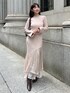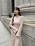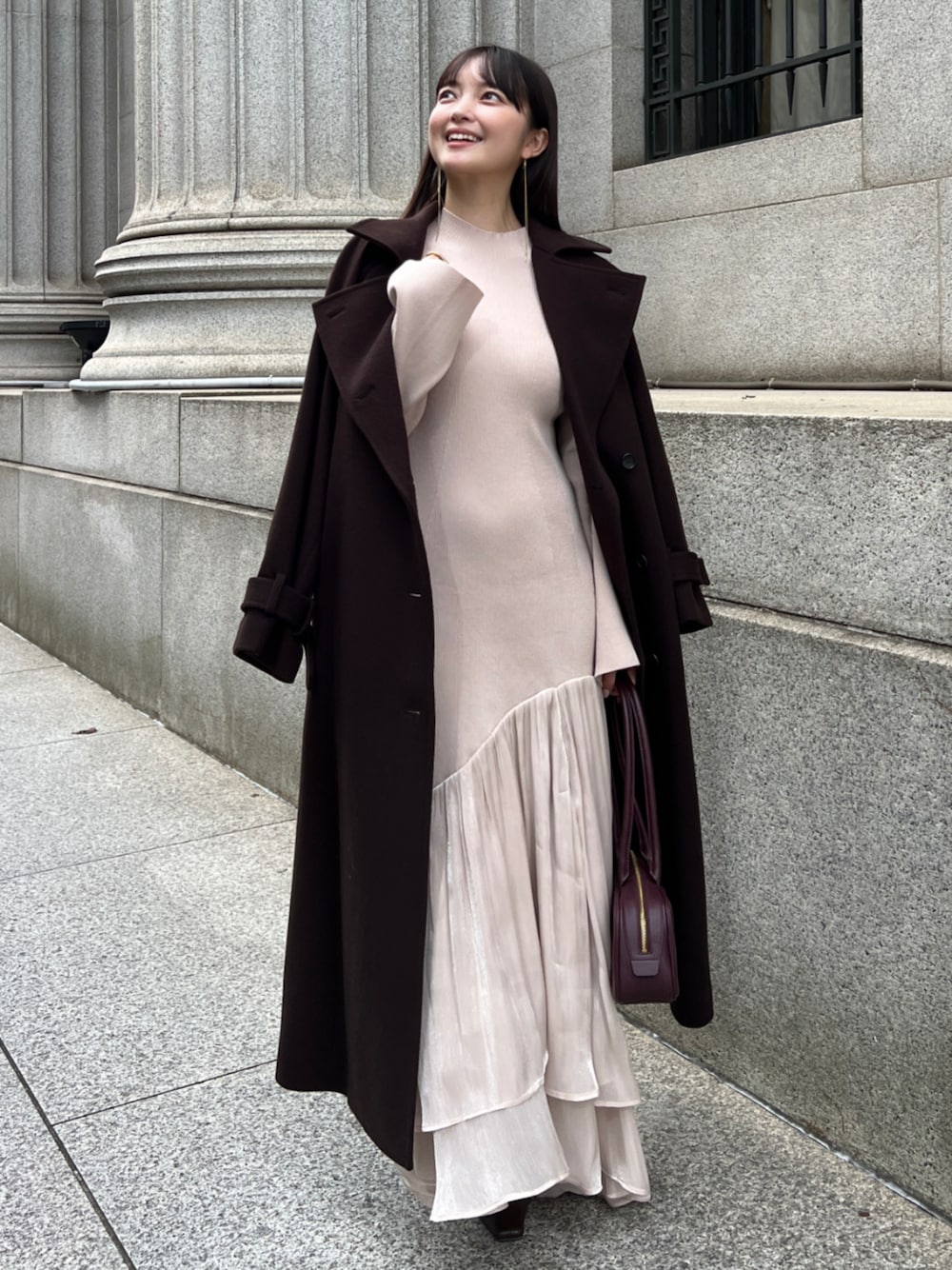 暖色カラーでまとめた、ホリデーシーズンにぴったりのコーディネート✨ ニットワンピースは美しいシルエットに拘り、 1枚でスタイルアップを叶えてくれます。 落ち着いたピンクベージュカラーなので、 デイリー使いからデートシーンまで幅広くお使いいただけます。