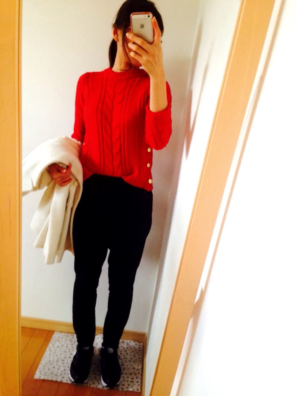 みんなさん、おはようございます(*^_^*) 今日は少し春気分🌸なので、赤いニットをチョイスしました^o^