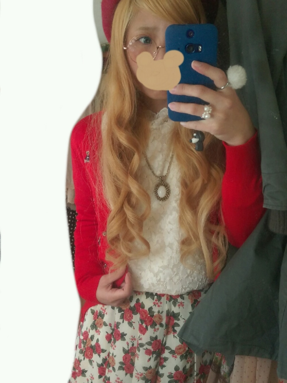 アリスのお店に行った時*♪ グリーンのカラコンをすると外人さん気分になれます(●´艸`) カーディガンのくまがちょっと怖い。。
