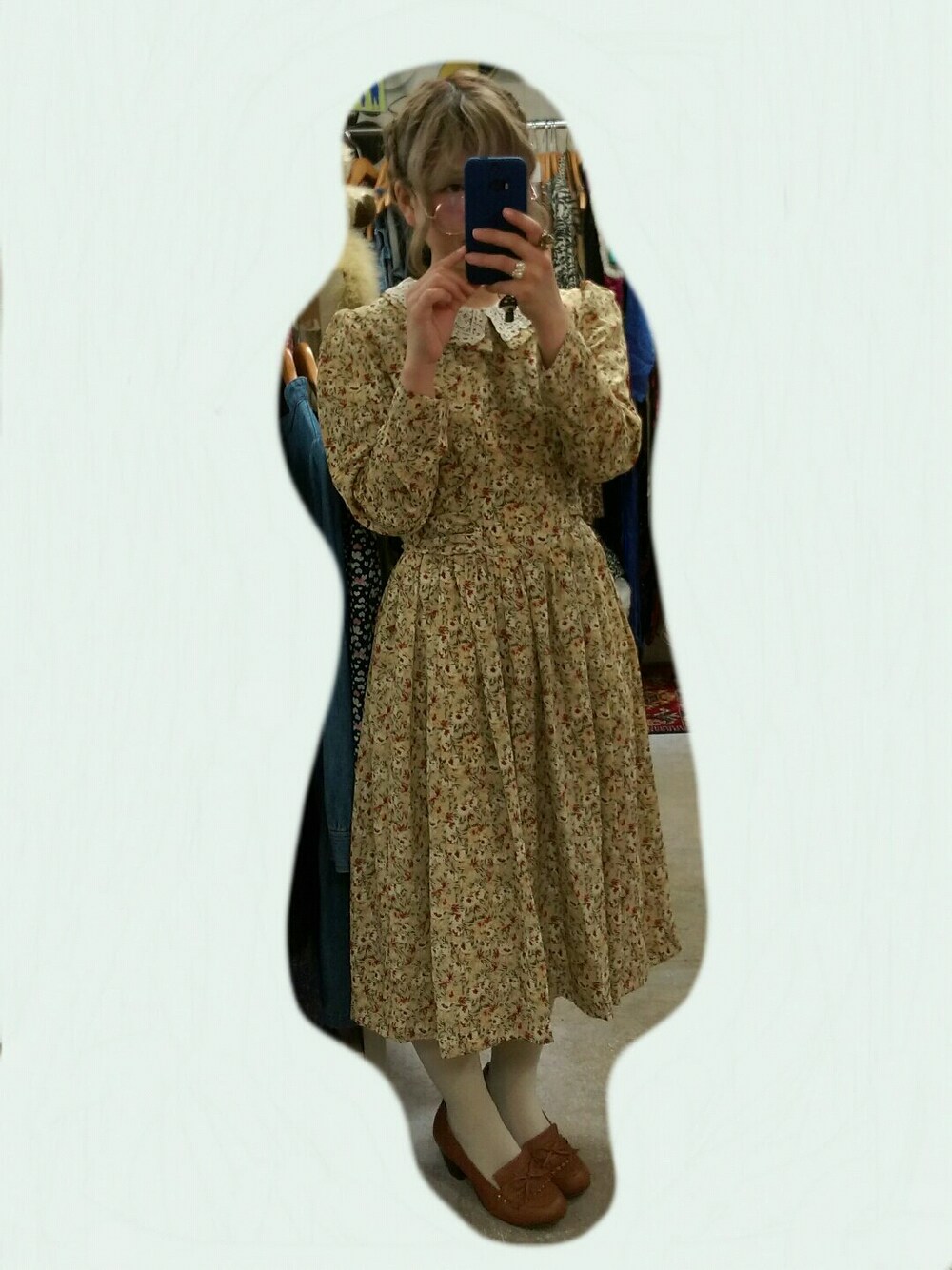 おばあちゃんコーデ* 小窓でうしろのボタンとリボンがかわいいのとヘアアレンジを見せびらかす(´・ω・`)