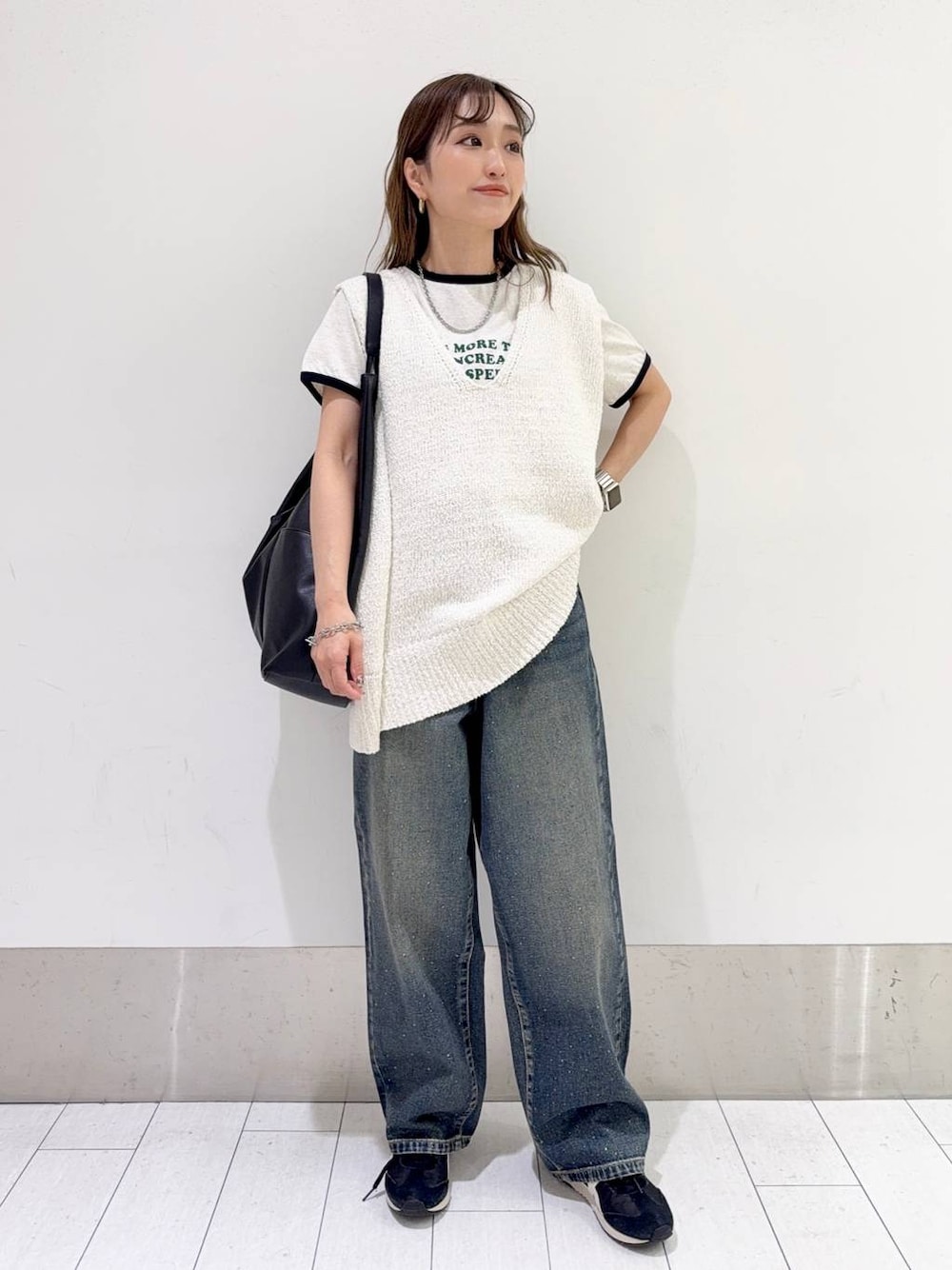 anyu(LOWRYS FARM 広島パルコ)のデニムパンツ「ビジューワイドストレートP 136104」を使ったコーディネート