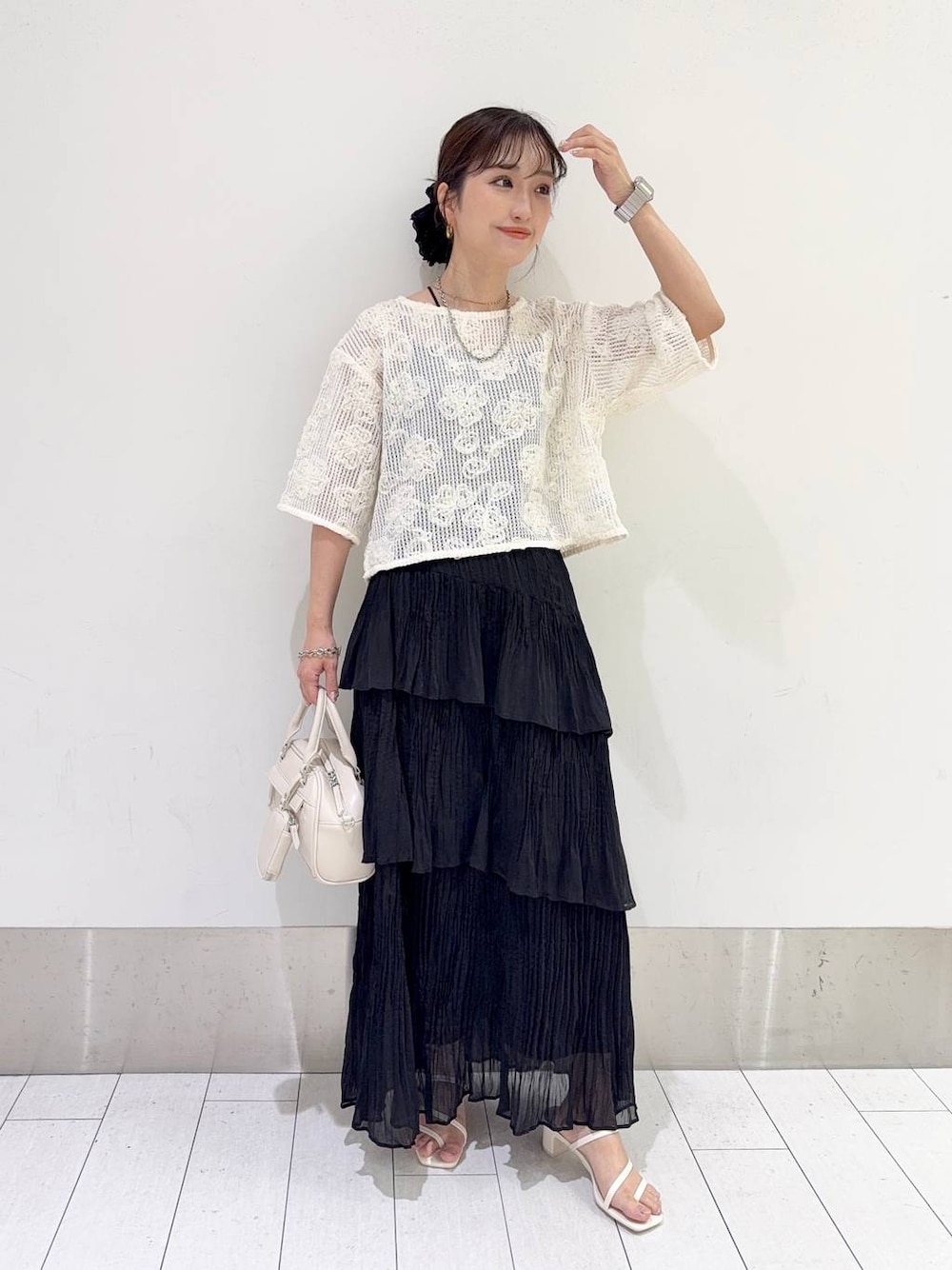 【セールコーデ】 着用アイテムをタグ付けしているので スライドして見てね♩ トップス▶︎▶︎フリーサイズ着用 立体感のあるレースデザインがよりお洒落見えするトップス! 程よい透け感で夏も涼しく着やすいアイテムです◎ スカート▶︎▶︎フリーサイズ着用 ウエストゴムで穿きやすいスカートは、 ティアードデザインでより可愛いく合わせて頂けます/ さらっとした肌触りで膨らみが少ないプリーツ加工なので 腰回りもスッキリ合わせて頂けます◎ 着回しや色違いコーデも沢山載せてるので見てね♩ インスタではリアルバイコーデを載せてるので のぞいてみてね♡ Instagram▷▷@_anyu325