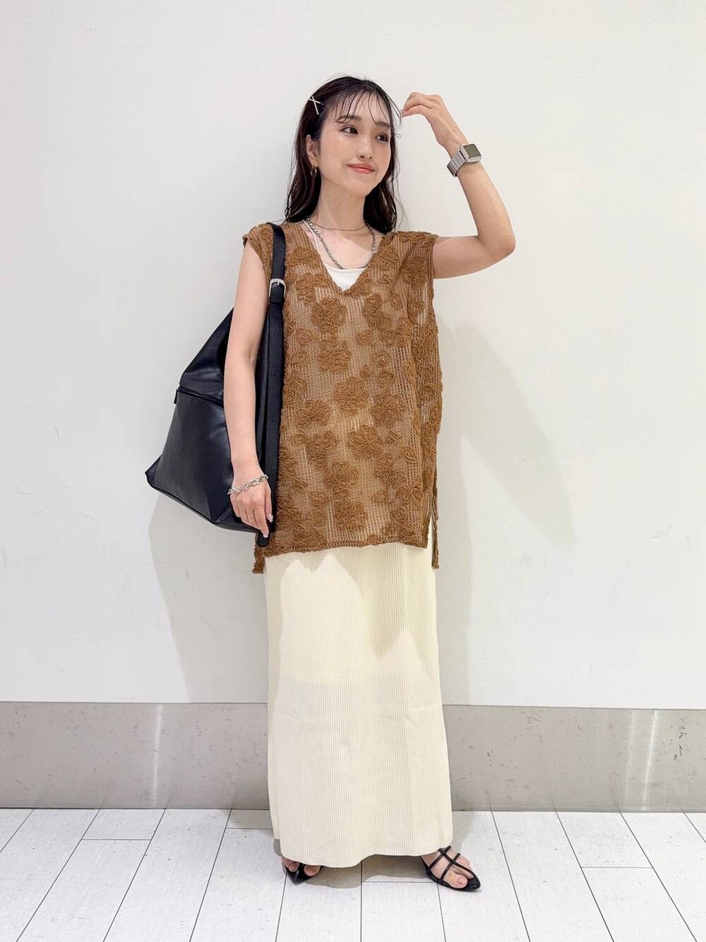 【セールコーデ】 着用アイテムをタグ付けしているので スライドして見てね♩ ベスト▶︎▶︎フリーサイズ着用 2wayで着れるベストは 立体感のあるレース柄がよりお洒落見えします/ 長めの丈感で腰回りもカバーでき、 ゆとりのあるシルエットで重ねて着やすいトップスです◎ スカート▶︎▶︎フリーサイズ着用 カット素材のスカートは季節問わずに合わせて頂け、 伸縮性もありウエストゴムで より穿きやすいアイテムです◎ セルフカットできるので小柄さんでも大丈夫です/ 着回しや色違いコーデも沢山載せてるので見てね♩ インスタではリアルバイコーデを載せてるので のぞいてみてね♡ Instagram▷▷@_anyu325