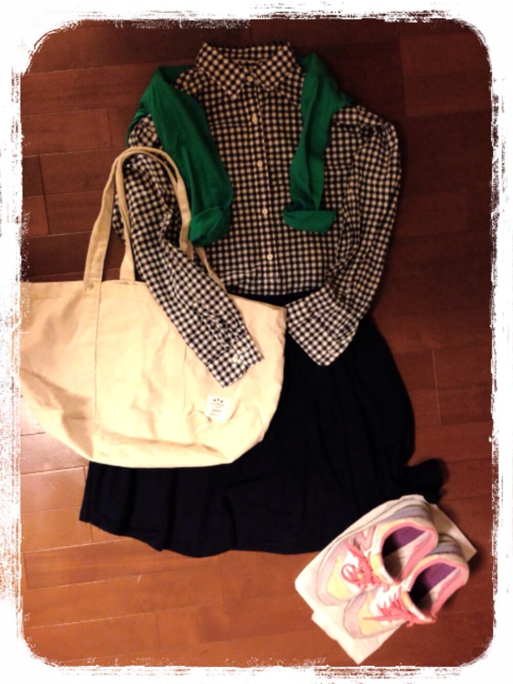 シャツ*UNIQLO カーデ、スカート*Soadalite ギンガムチェックが着たくてだいぶ前のシャツひっぱりだしてきました☺︎ 去年買ったスニーカーは春になると履きたくなるカラー☆