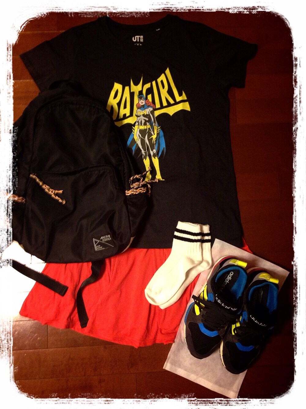 Tシャツ*UNIQLO スカート*シトリン チャクラ リュック*Another Edition WEAR見てたら欲しくなってしまったBATGIRLTゲットしちゃいました☺︎ グレーは汗が怖いから濃い色セレクト( ゚д゚ )