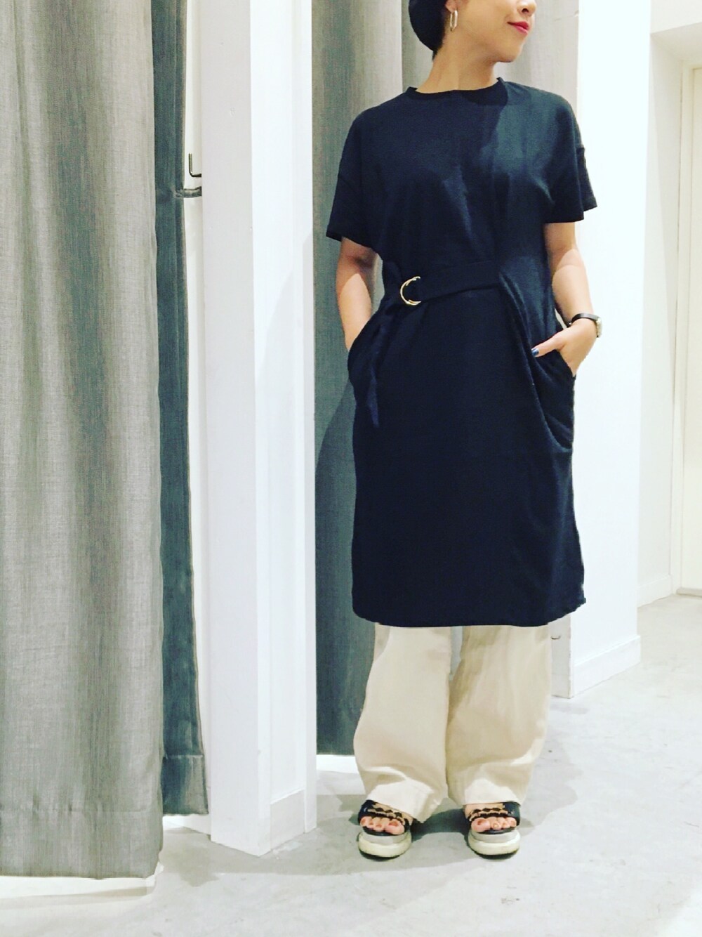 真依子のワンピース「・ウエストベルト付ワンピース」を使ったコーディネート