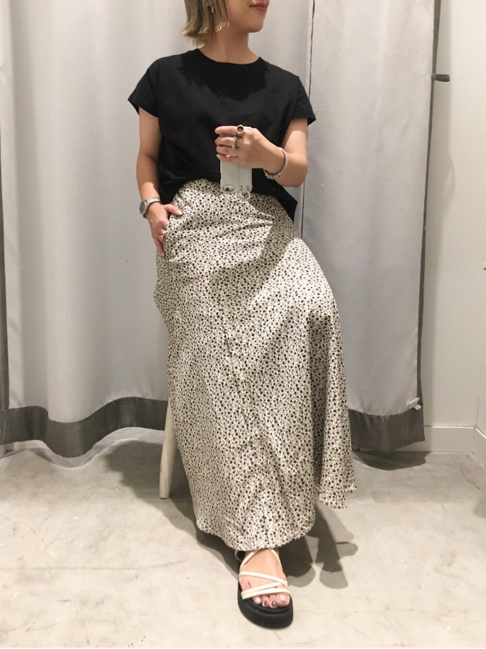 夏のモノトーンコーデ♡ 細かなドット柄や小花柄が上品で 甘すぎないロングスカート 合わせ方次第でカジュアルにも フェミニンにもなる幅広いコーデを 楽しめますよ‼︎