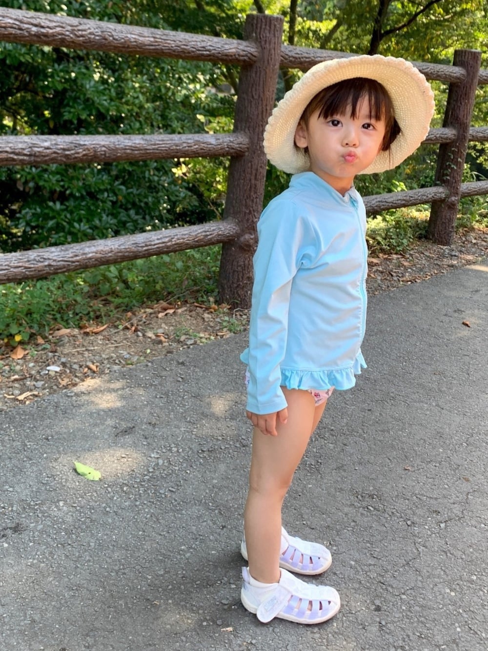 川遊びです! 水着はアイス柄のセパレート。 トドラー90cmなので、今年でサイズアウトかな。