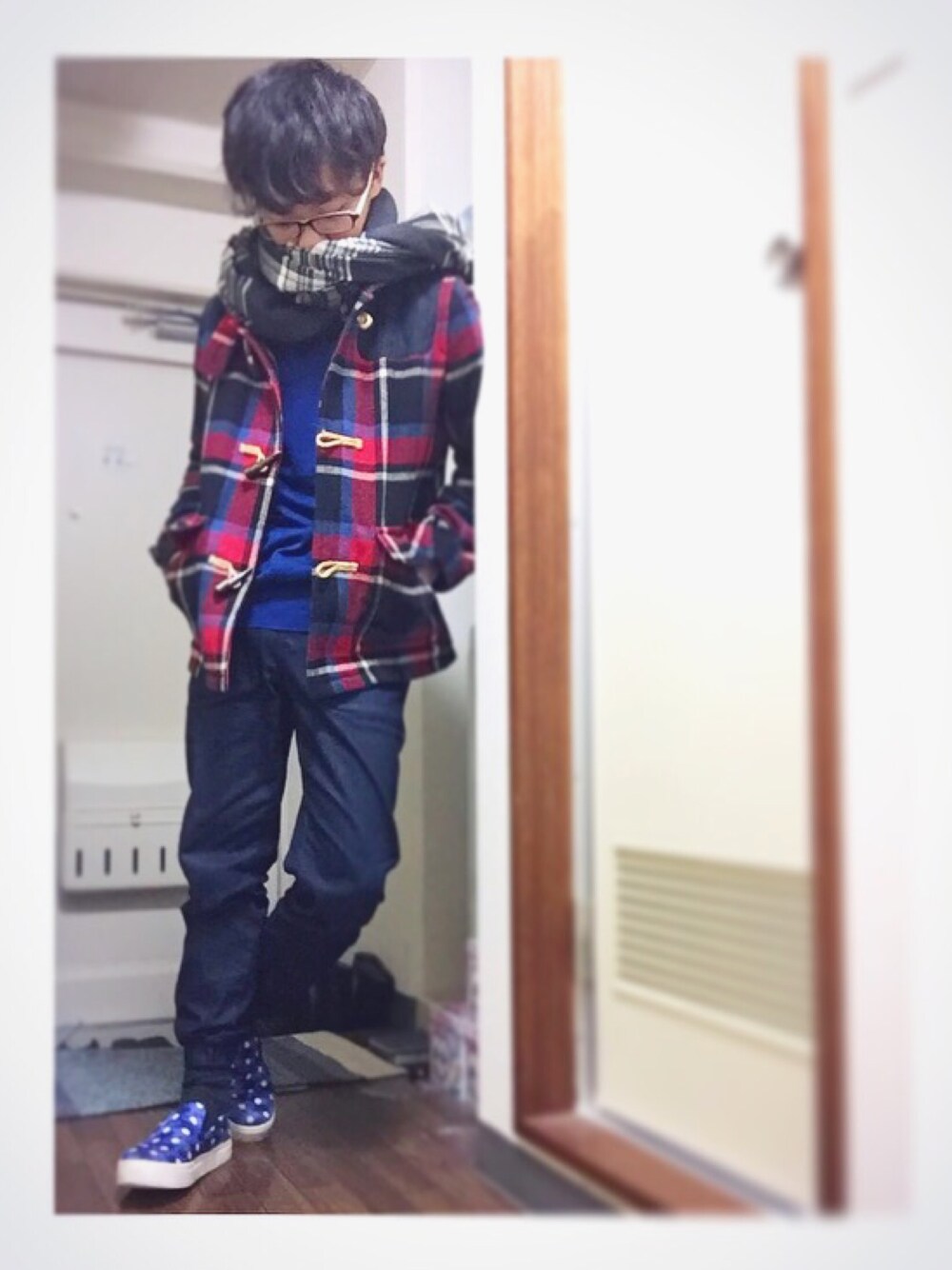 ~ダッフルコート・チェック~ はい。 冬らしいコーデです⛄️ 実に冬らしい。 インナーに着てる青いセーターは UNIQLOのEFMセーター🙆♂️ 略してるんですが、略さないで言うと エクストラファインメリノセーター。 長ったらしいんでUNIQLO勤務中は EFMって略すんです笑 このセーターなのですが、 まず、とても安い🙌 あと、ここが一番のセールスポイント! シワと毛玉が全然できないんです👀 ラム素材のようにすごく 暖かいという訳では無いんですが、 「重ね着を楽しみたいよー。」とか、 「毛玉気になるよー。」って方には 一番におすすめできるセーターですよ〜😊 (おっと、店員してしまった...) 67ブルーのEFMセーターと 反対色の赤チェックの相性が とても抜群ですよね〜🐾 最後にひとこと。 じゃがりこうまい。 こだま。