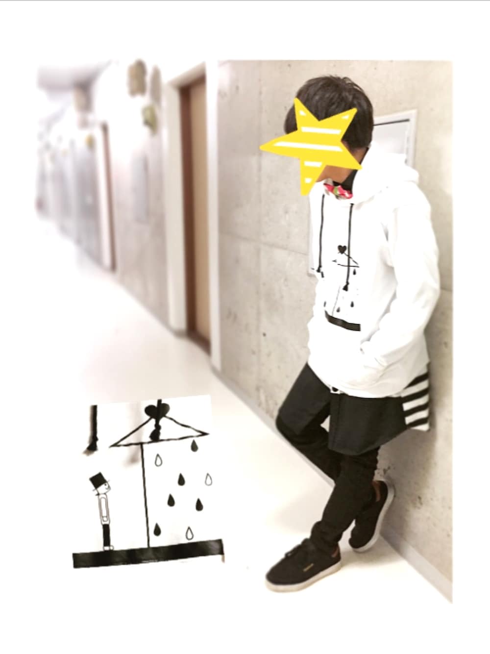 【傘の意味がありません】 こんにちは〜✨ 先日大好きでいつも行ってる NIRAME.COさんで ″雨漏りぱーかー″ を購入したので投稿ですん🙋 まーーーったく傘の意味が無い すましくんをご覧下さい。 ロングシャツと合わせて レイヤードしたんす👀 ボーダーがちらっ。 蝶ネクタイもちらっ。 靴の茶色もちらっ。 人間″ちらっ″に魅力を感じるん。 ちらっちらっ。ちらっ。 ゲシュタルト崩壊っす。 あんず。
