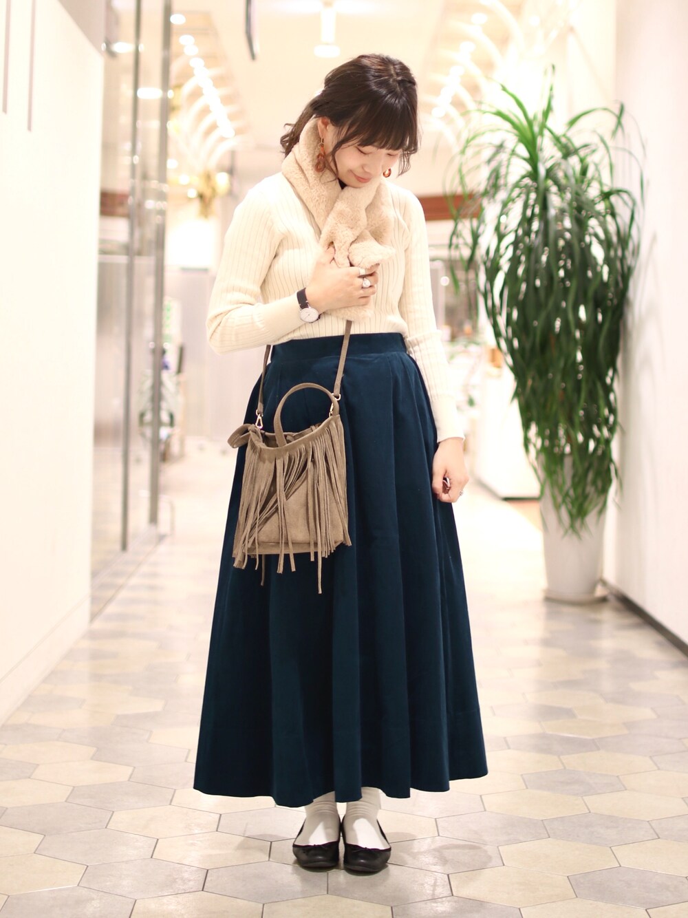 anzu(SMELLY)のスカート「コーデュロイロングフレアスカート」を使ったコーディネート