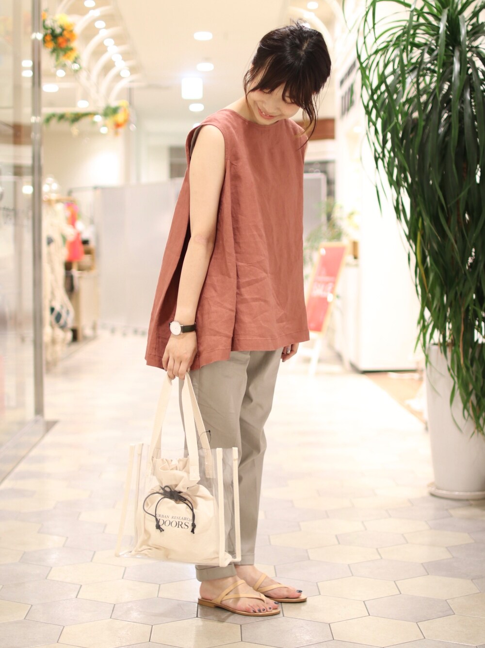 anzu(SMELLY)のシャツ/ブラウス「リネンノースリーブタックブラウス」を使ったコーディネート