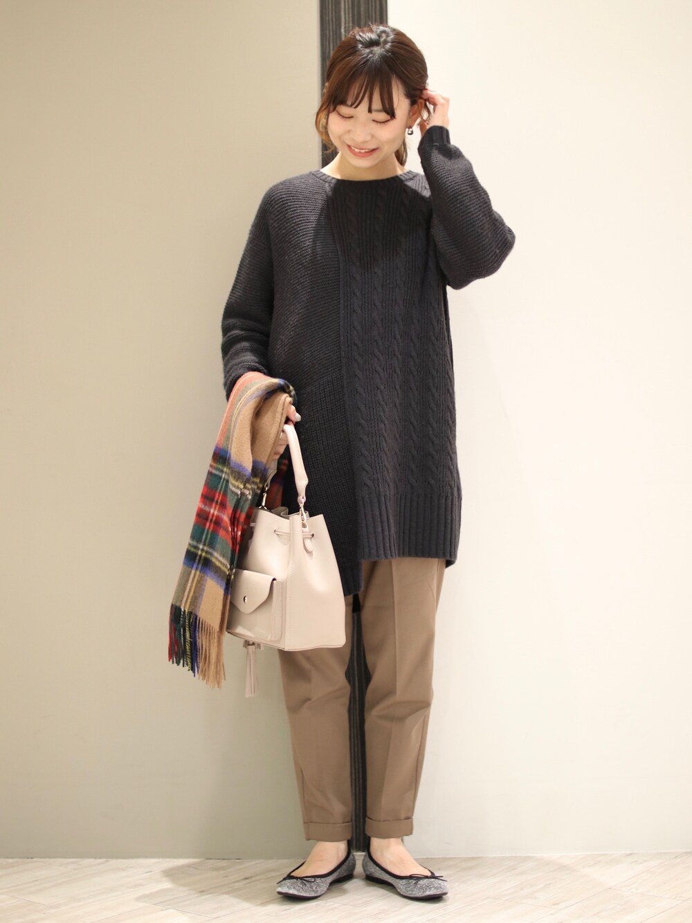anzu(SMELLY)のストール/ショール「TWEED MILL WOOL STOLE」を使ったコーディネート