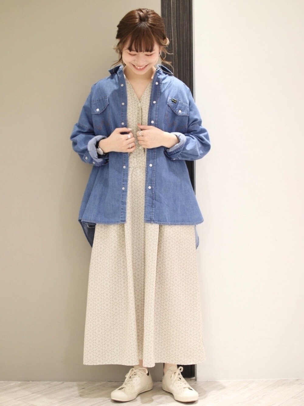 可愛らしいワンピースに、デニムジャケットを合わせて甘辛ミックスコーデに😌 Instagram @anzu_amesoda