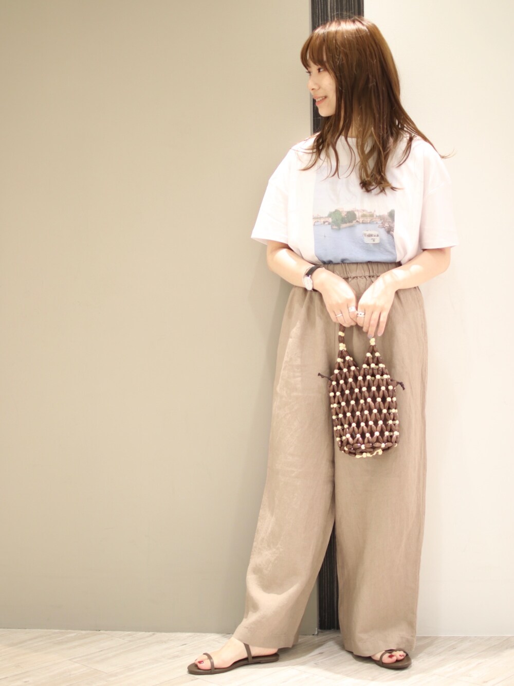 anzu(SMELLY)のハンドバッグ「ARIADNA ウッドビーズバッグ」を使ったコーディネート