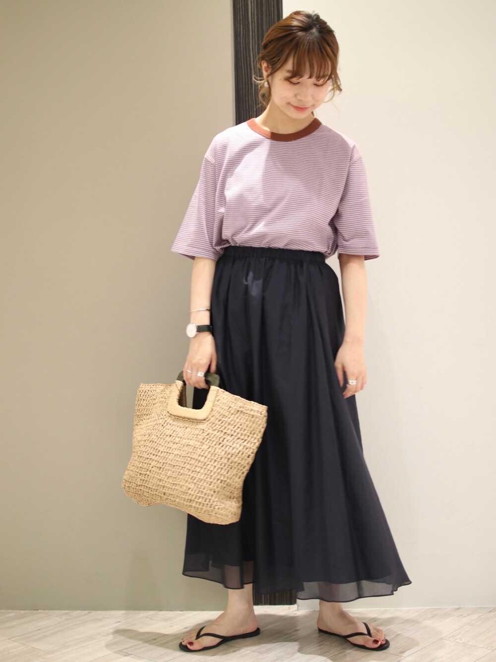他ではあまり見つからなさそうな 珍しい配色のボーダーがカワイイ!🍃 大きめバッグも今年っぽくてオススメ◎