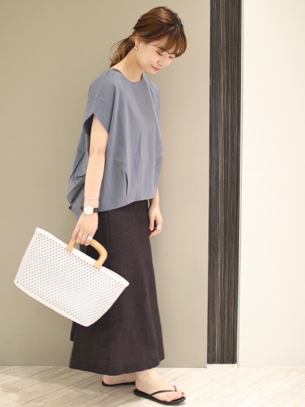 anzu(SMELLY)のかごバッグ「LOES ウッドハンドルメルカドバッグ」を使ったコーディネート